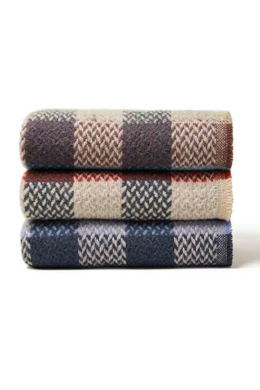 British Welsh Wool Check Throw Blanket, Recycled 100%