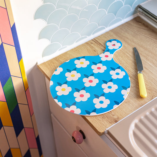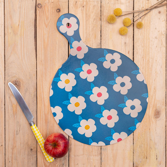 Chopping Board Ocean Blue Retro Floral - Enamelhappy