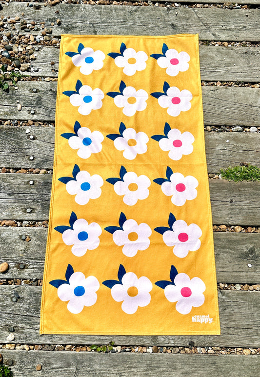 Beautiful Quick Dry Beach/Bath Towel Large - Retro Floral Honey Yellow