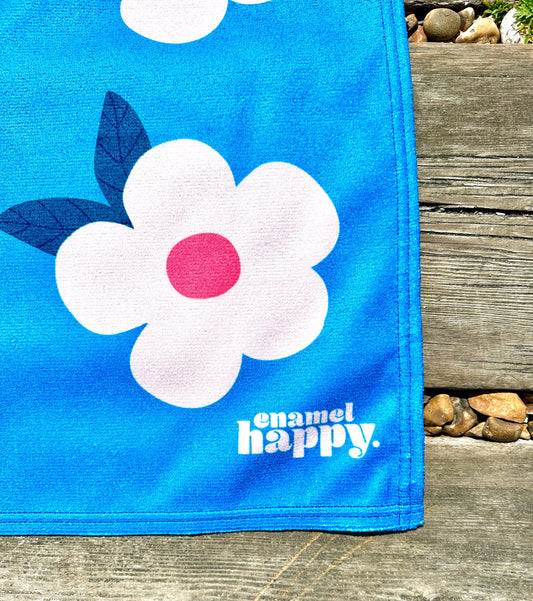 Beautiful Quick Dry Beach/Bath Towel Large - Retro Floral Ocean Blue