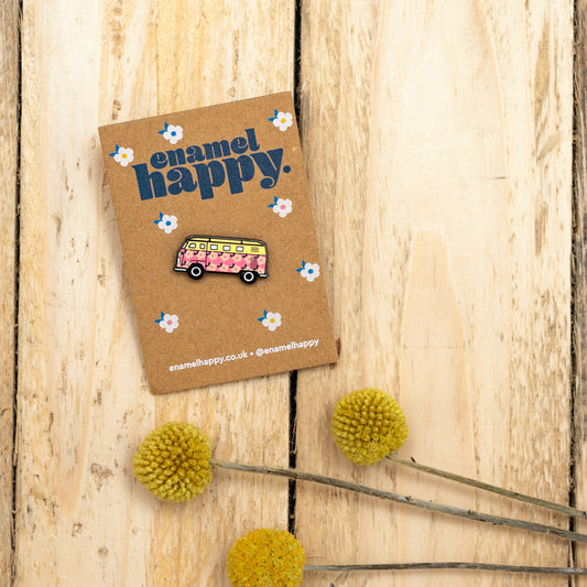 Campervan - Pink Enamel Lapel Pin Badge - Enamelhappy