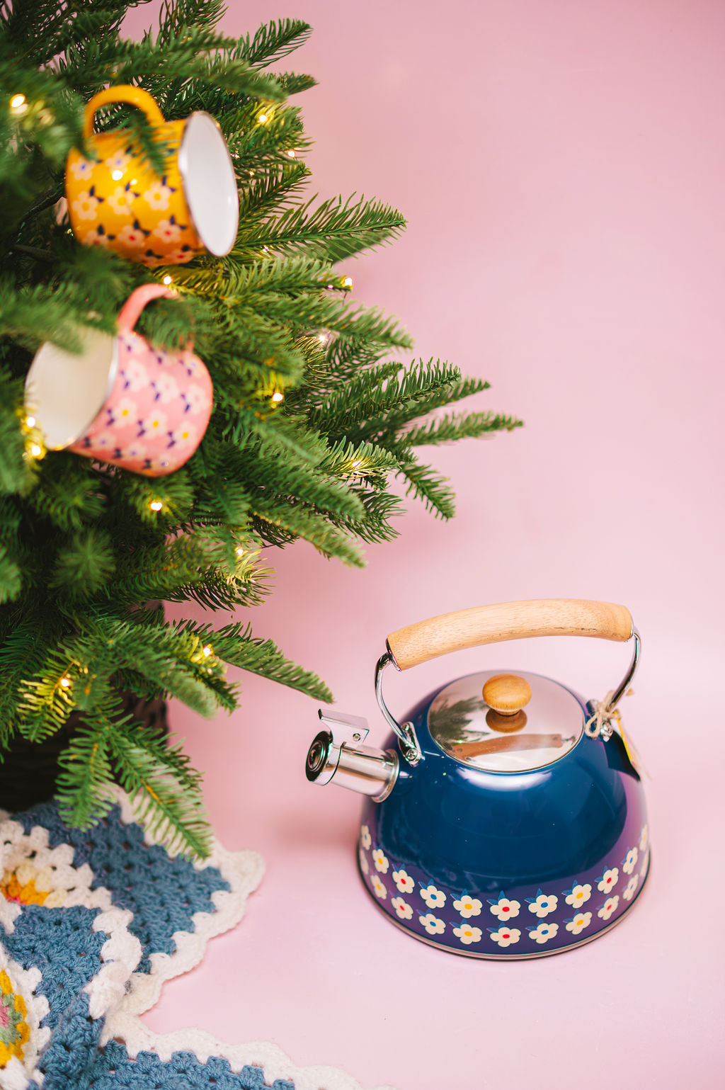 2.5L Whistling Kettle Stainless Steel Midnight Navy Blue Floral - Enamelhappy