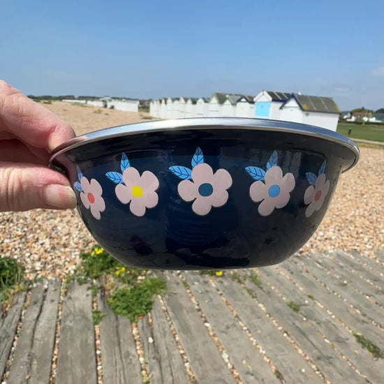 Midnight Navy Blue Retro Daisy Enamel Bowls - Enamelhappy
