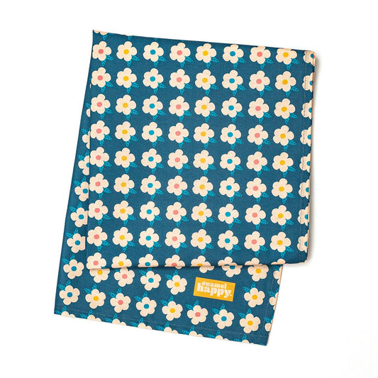 Ocean Blue Retro Floral Gift Bundle - Enamel Cup, Pin Badge, Tea Towel & Coaster Set